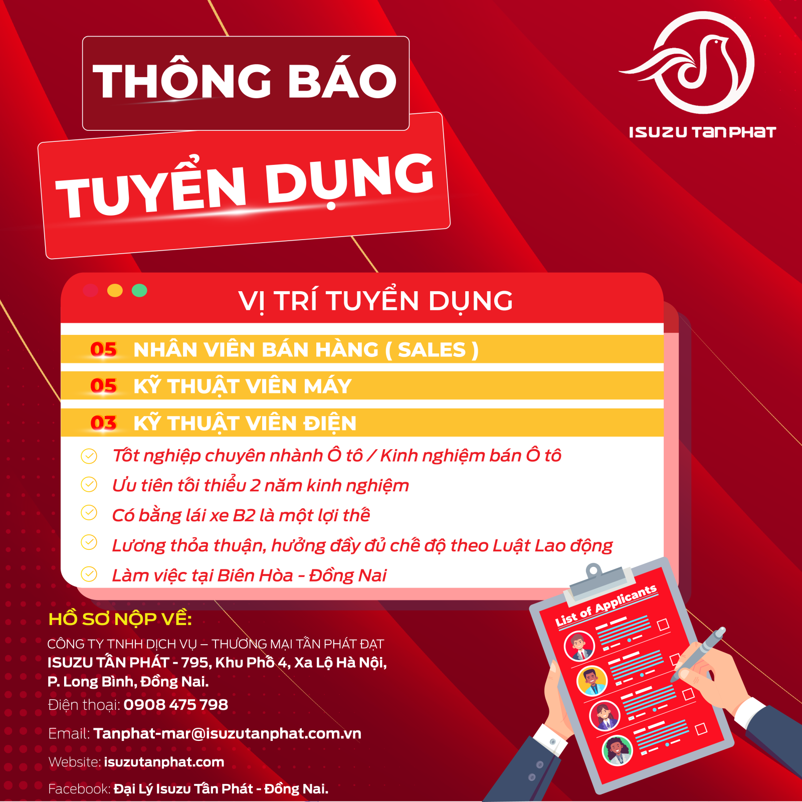 Gửi CV về: tanphat-mar@isuzutanphat.com.vn