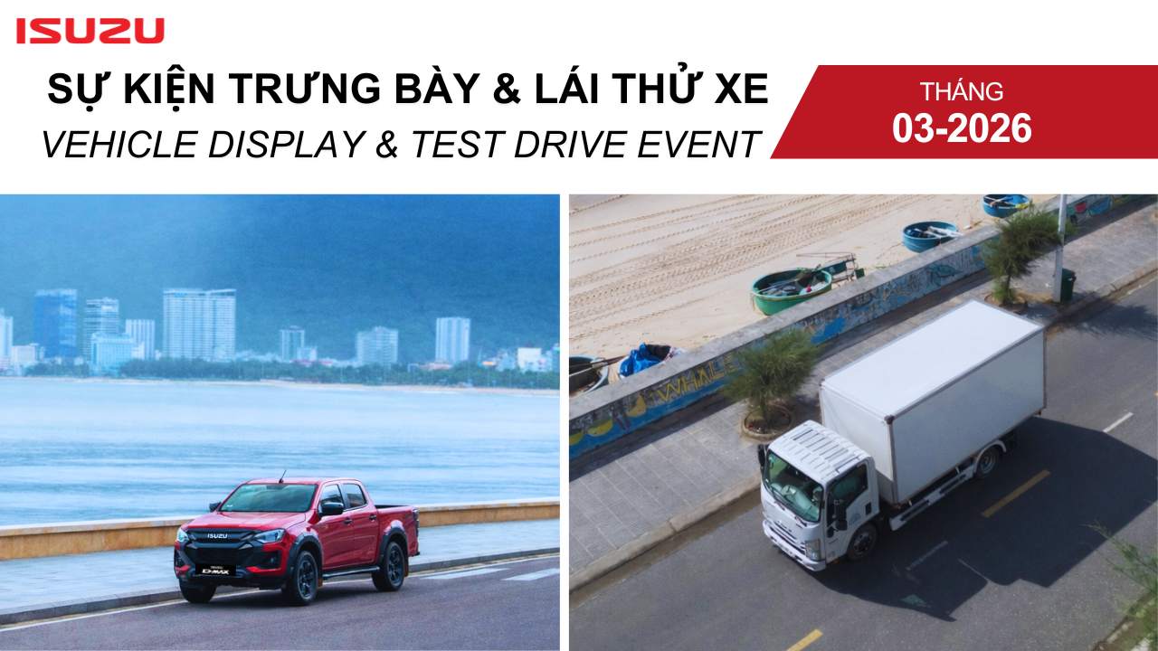 Để Quý khách hàng có cơ hội trải nghiệm thực tế và tìm hiểu chi tiết các dòng xe hiện có, ISUZU Việt Nam xin thông báo lịch sự kiện Trưng bày & Lái thử xe tháng 03/2026.