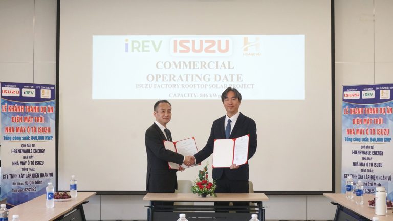 Ngày 08 tháng 12 năm 2025 vừa qua, Công ty TNHH Ô tô ISUZU VIỆT NAM (ISUZU Việt Nam) và Công ty TNHH I-RENEWABLE ENERGY VIỆT NAM (iREV) đã tổ chức buổi lễ khánh thành dự án Điện Mặt Trời, đánh dấu một cột mốc quan trọng trong chiến lược phát triển bền vững của công ty. Ông Wataru Nakano – Tổng Giám Đốc ISUZU Việt Nam (phải) và Ông Tomoyuki Itabashi – Tổng Giám Đốc iREV (trái) ký kết thông báo ngày vận hành thương mại. Dự án Điện Mặt Trời được triển khai nhằm tối ưu hóa nguồn…